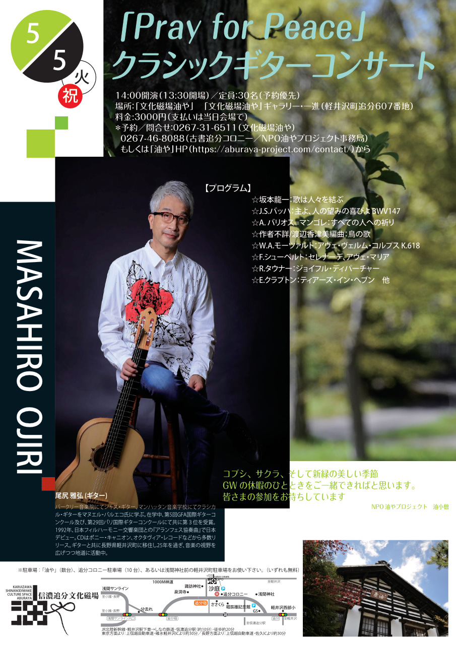 5/5(火・祝)「Pray for Peace」クラシックギターコンサート